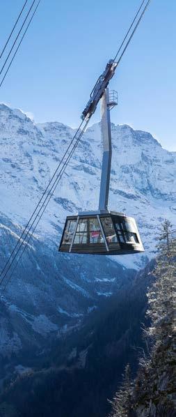 Fahre in der steilsten Seilbahn der Welt von Stechelberg hoch nach Mürren. Take a ride on the steepest cable car in the world from Stechelberg up to Mürren.