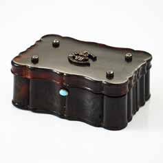 395. DOSA, sköldpadd, London 1867, locket med Edward VII:s monogram, montering i silver med dekor av strass samt enstaka rosenslipade diamanter, knäppe med en cabochonslipad turkos, beslag i 9 k guld. 10,5 x 8 x 4 cm