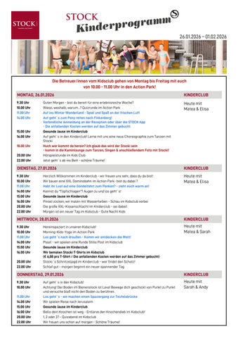 16.00 Uhr Auf geht´s in den Kinderclub! Lerne mit uns eine neue Choreographie zum Tanzen mit Stocki
