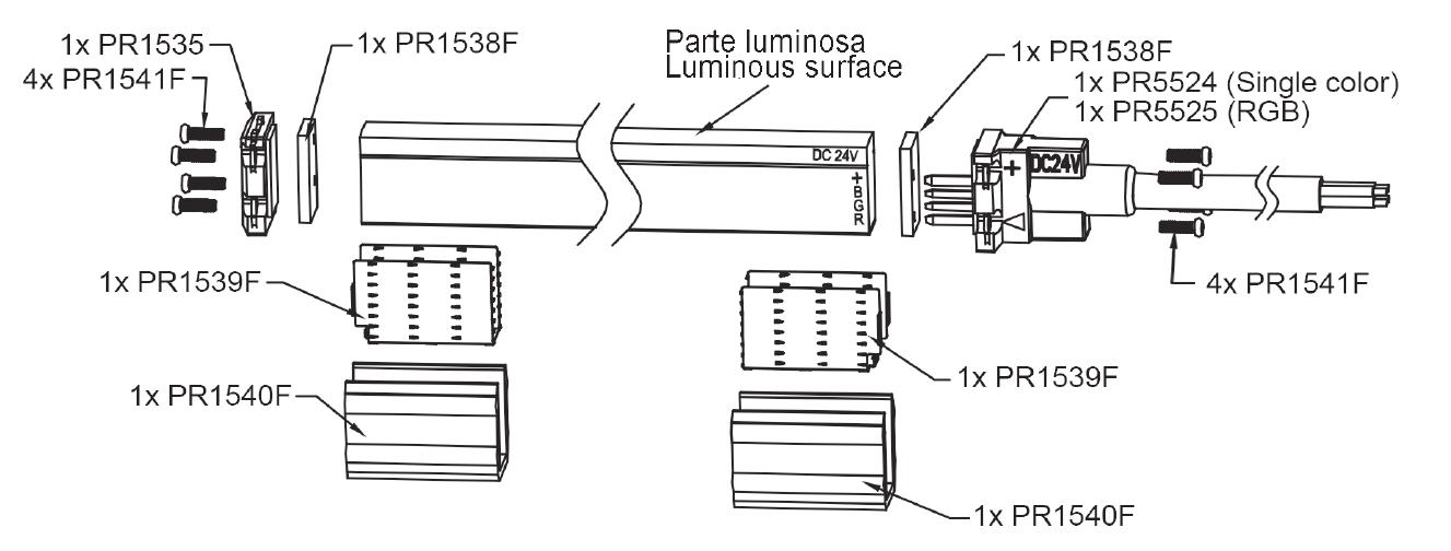 fluorescent lamps. The lower energy impact due to the fact that the light emitted is not a source of heat emision, has made possible to expand the general offer of products that before were not feasible, allowing more decorative lighting solutions for the more different emission. Better is also the management of white color temperatures and the ease of color mixing with the consequent expansion of the RGB product offer at lower costs.