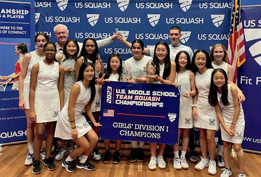 Winning streak: The TEVF squash team poses a er winning the U.S. Middle School Squash National Championships. The team became the rst public school team to become national