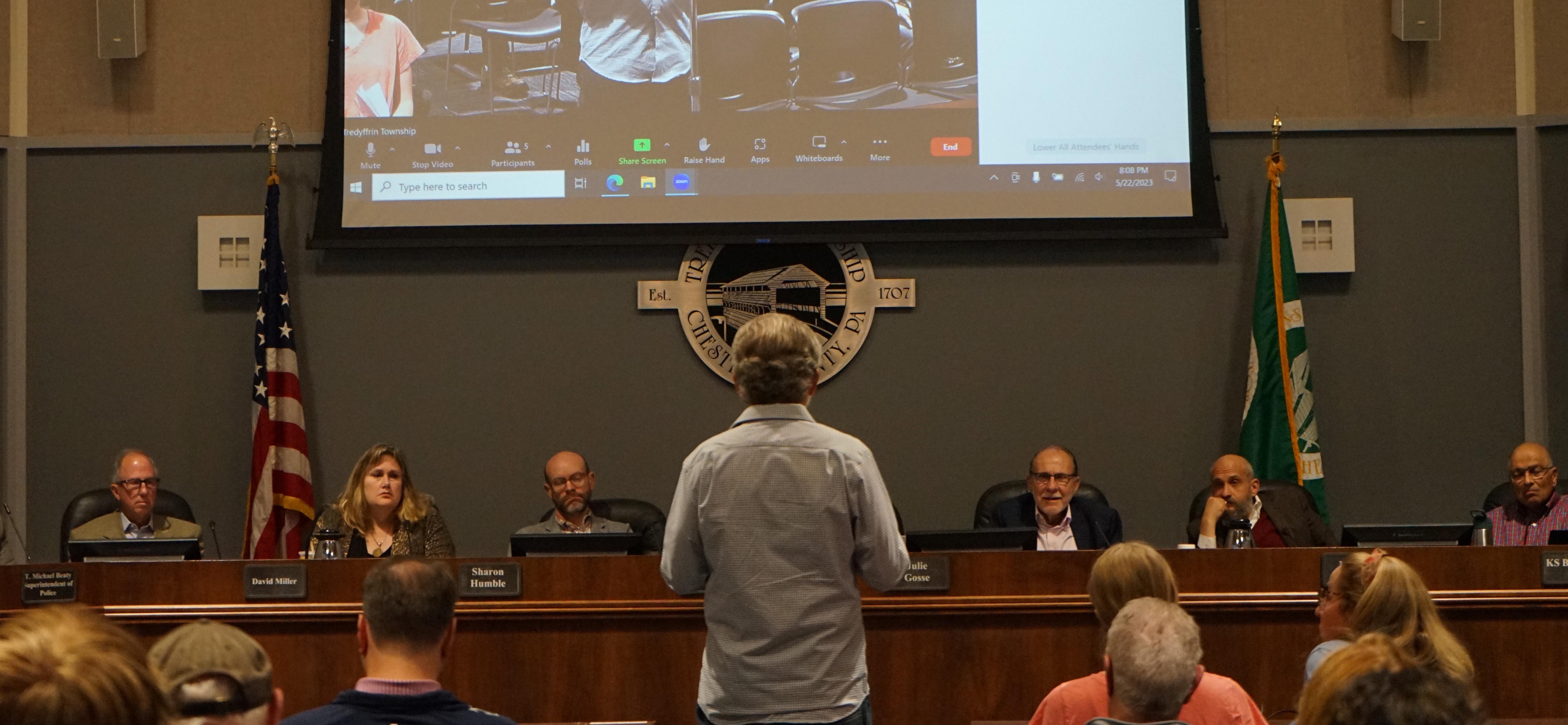 out: Chesterbrook resident and Holocaust survivor Howard Griffel speaks at a Tredyffrin Township Board of