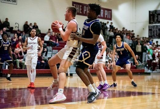 On Feb. 28, for the rst time in 38 years, the Conestoga boys’ basketball team won the District 1 6A championship. Conestoga faced o against Plymouth Whitemarsh High School in Hagan Arena during the district championship. e two teams were neck-and-neck for four quarters, with Plymouth Whitemarsh gaining an additional point in the fourth quarter , tying the score at 43-43 and sending the game into overtime. With 5.7 seconds remaining in overtime, senior and co-captain Ben Robinson hit two free throws, putting Conestoga up 54-50 and securing the Pioneers’ victory in the district championship. is marked boys basket-