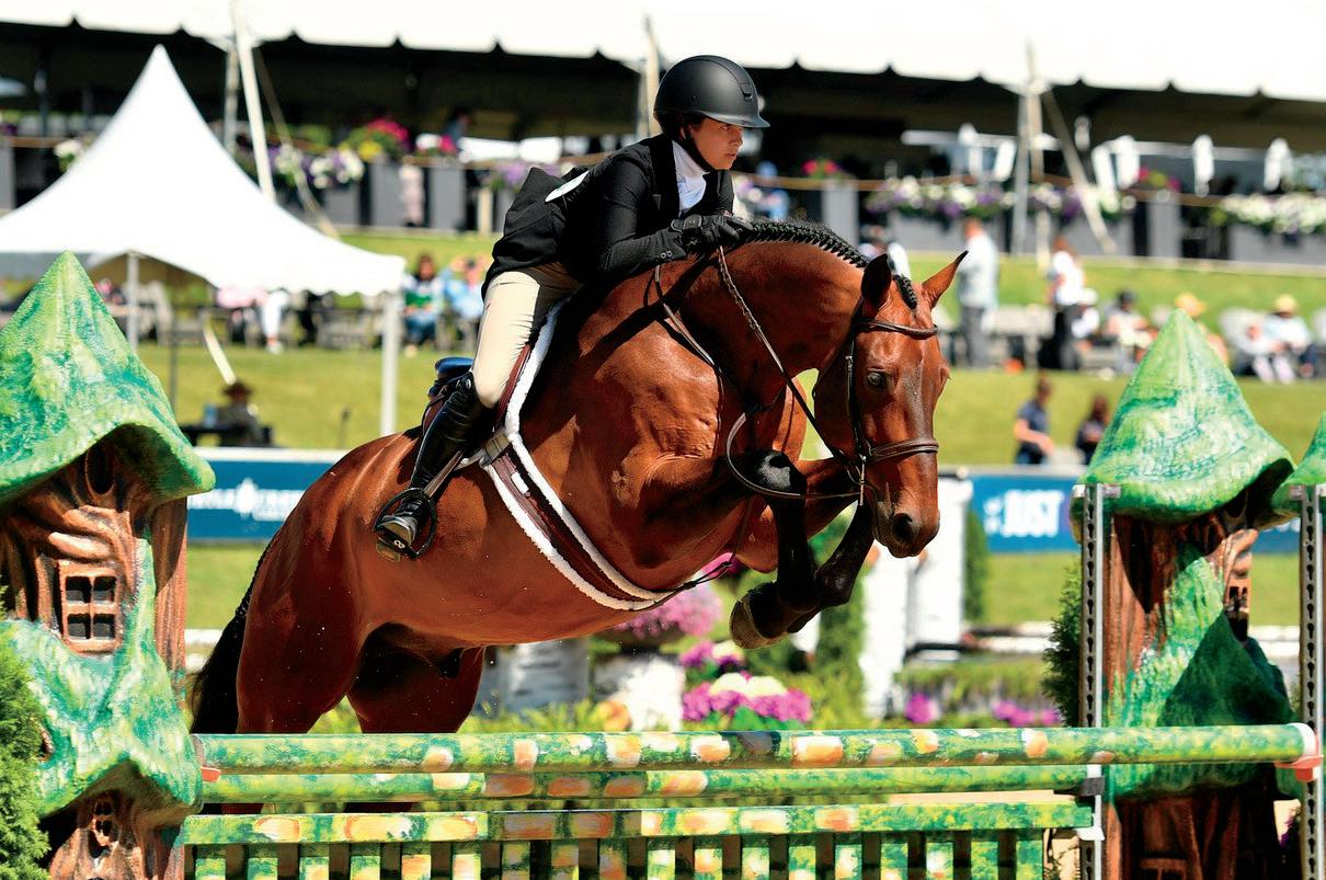 Hurdling over obstacles and bounding across the riding ring, junior and equestrian Izzy Bolton sits atop her horse as she competes in a horseback riding competition.