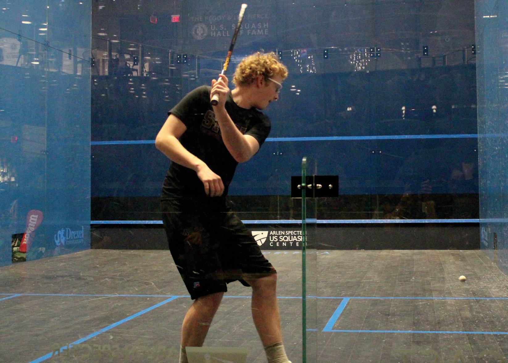 Warmup routine: Senior Warren Schrader warms up the ball before his match. The boys competed at the 2025 National Interscholastic Team Squash Championships and took rst place.