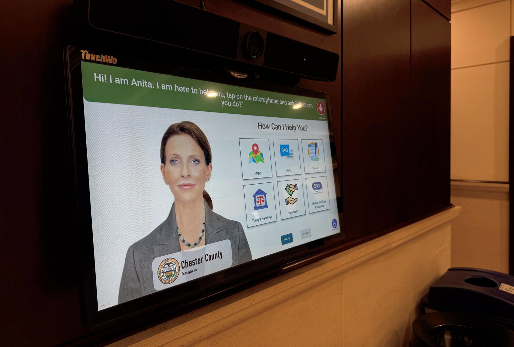 In January, the Chester County Court Administration installed artificial intelligence-powered interactive information kiosks in several locations throughout the county. The touchscreen and voice-activated kiosks assist users with accessing court forms, locating court offices and paying fines or bail with a credit card. The kiosks can also access the county’s Human Needs Network, other court departments and community partner organizations.