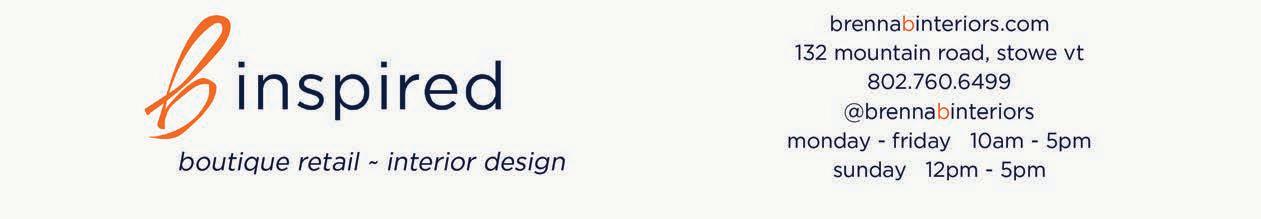 brennabinteriors.com 132 mountain road, stowe vt 802.760.6499 @brennabinteriors tuesday - friday 10am - 5pm sunday 12pm - 5pm