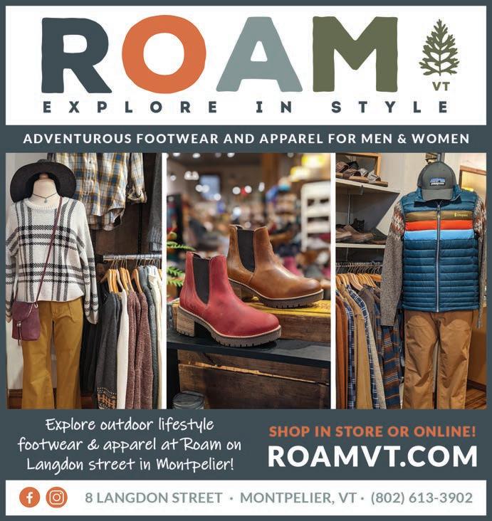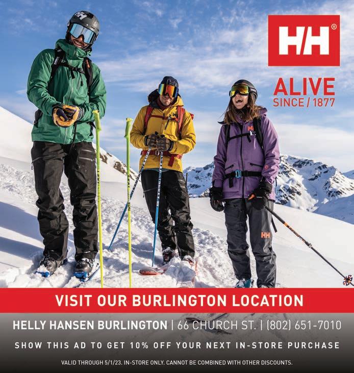 ON OUR COVER essentials 8 Contributors 18 Rural route: Heidi retires • Madi Party pix • ‘The Long Way Home’ Globetrotters • Hall of fame Luigi Lucioni paints Stowe 56 Outdoor primer: On skinny skis Ice skating • Snowmobiling Ice fish • Snowshoe 94 Things to do The Current • Exhibits and openings Spruce Peak Arts • Road trips 144 Edibles: Piecemeal Pies • American Flatbread • Modern Times Theater winter / spring 2022-2023 45 GETTING OUTDOORS 94 SHOPPING & GALLERIES 134 DINING & LODGING 168 REAL ESTATE & HOMES 214 BUSINESSES & SERVICES AROUND departments 10 From the editor: ‘We love you, too’ 14 First person: Father’s Day 46 On mountain: Ski Stowe 48 Trail journal: Down the Bruce 50 Sweet spot: Trial by snow 54 Stowe jobs: Earn your turns 58 Boarder patrol: Acy Craig 96 The Current: Contemporary art 98 History lesson: Coffin windows 102 Cool places: Museum celebrates 20 106 Stowe people: Wonder women 110 Music lesson: Peter Schmeeckle 128 Found in Vermont: Shopping list 130 Shop keep: Rogue Herbalist 176 Lifestyle: Death doulas 180 Spotlight: Brenna B. Brochhausen 186 House for sale: Got $2 mil? GETTING 106 40 104 Mountainfilm on tour