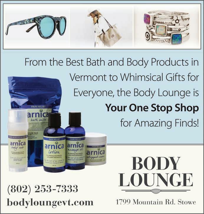 www.butcheryvt.com @vtbutcher GOURMET FOODS CRAFT BEER & WINE SELECTION EXPANDED PREPARED FOOD SELECTION premium quality take-out for any occasion 504 Mountain Road, Stowe, Vermont 05672 802-253-1444 NEW OWNER SAME GREAT PRODUCTS