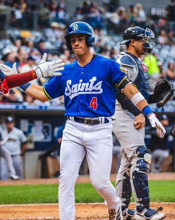 5. They have played three four plus hour games with the longest game being the epic 14 inning game at Toledo on August 28, 2021 that was halted due to curfew. That game lasted five hours and seven minutes. The other two four-hour games were May 21, 2021 a fourhour and four-minute game vs. Indianapolis that went 10 innings and an August 26, 2021 game at Toledo that also lasted four-hours and four-minutes going 11 innings. The Saints lost all three of these games.