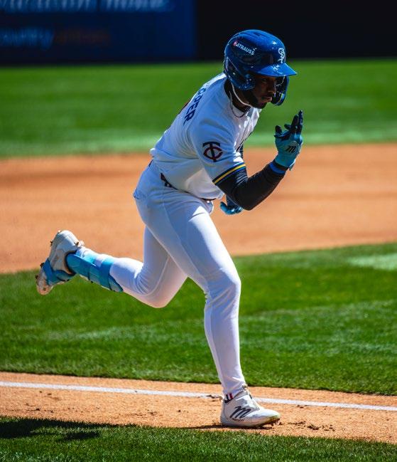 (39-20, Rookie, Florida Complex League) — The Florida Complex League Twins posted their first winning season since 2019 (.577) and finished with their best winning percentage (.661) since 2007 (.661). They clinched the FCL’s South Division and went 1-2 in the best-of-three FCL Championship Series. Offensively, they ranked second out of 15 FCL teams in walks (305), fourth in home runs (29), on-base percentage (.361) and OPS (.689), and eighth in slugging (.328). Their pitching staff posted the sixth-lowest ERA (3.77) in the league and secondhighest strikeout-to-walk ratio (2.54) while allowing 21 home runs, tied for the fourth-fewest in the league.
