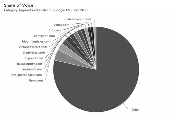 FIGURE 1–4. Share of voice in apparel and fashion, Google US, October 2012. (Source: AdGooroo Industry Insight)
