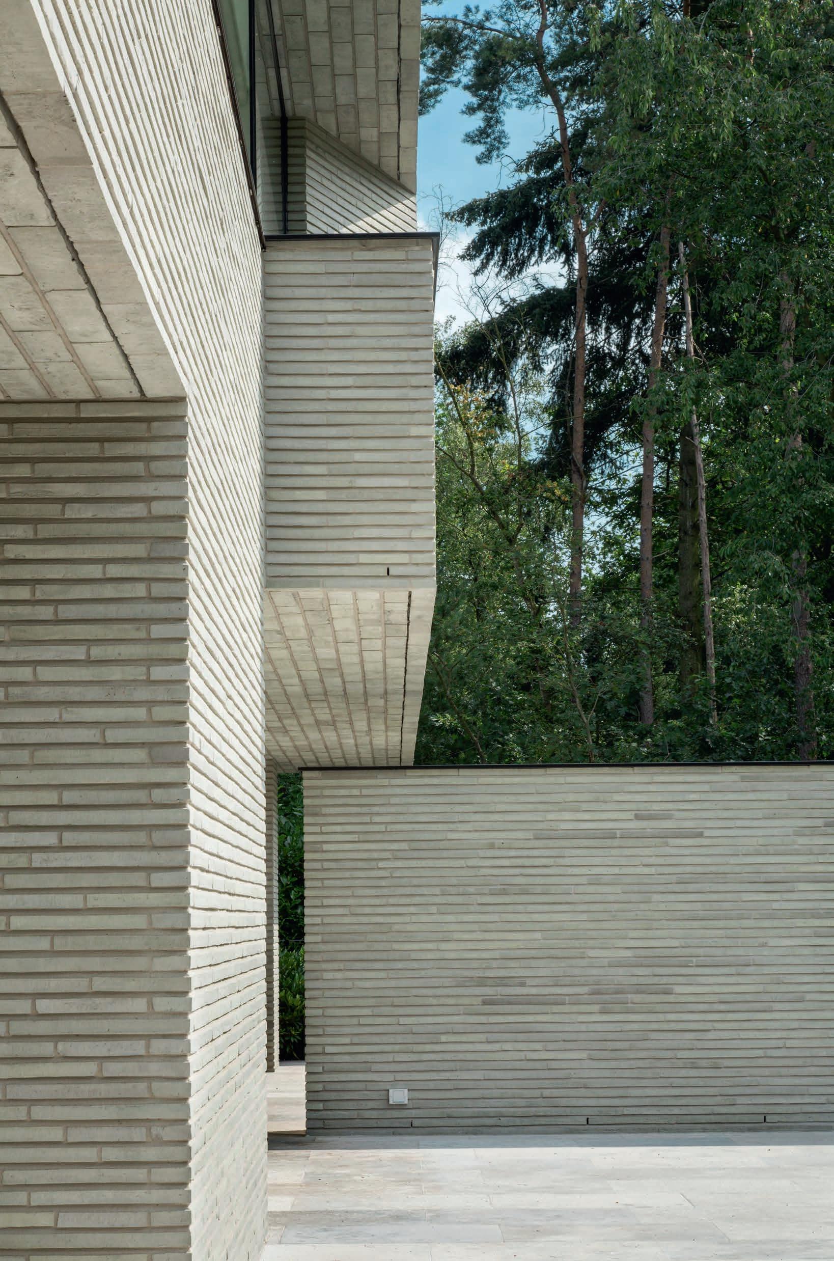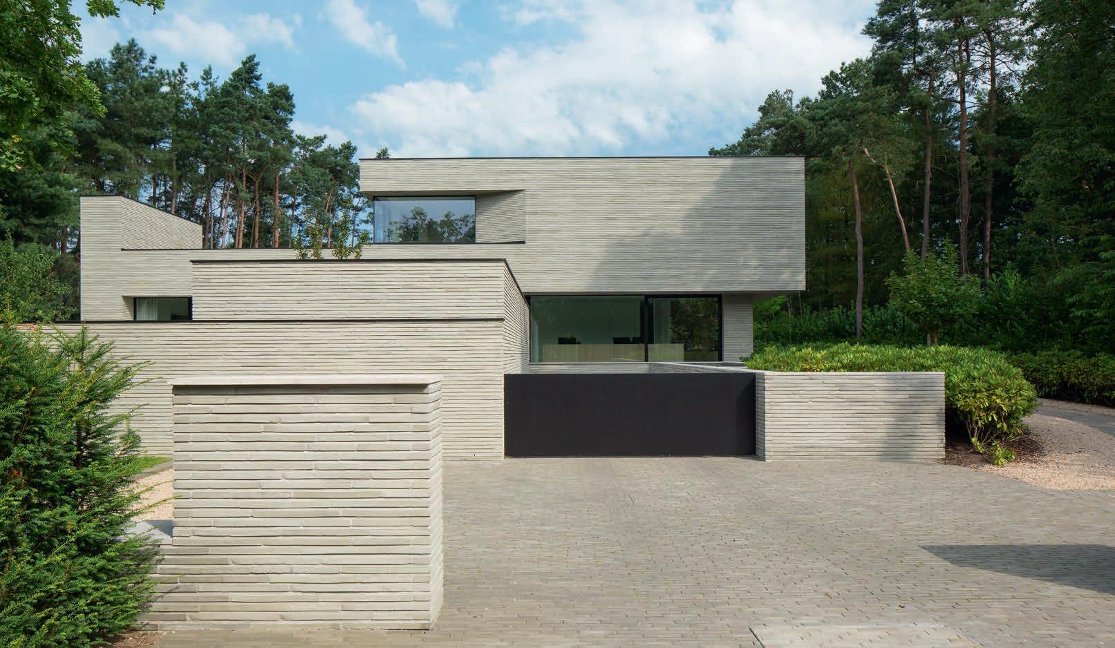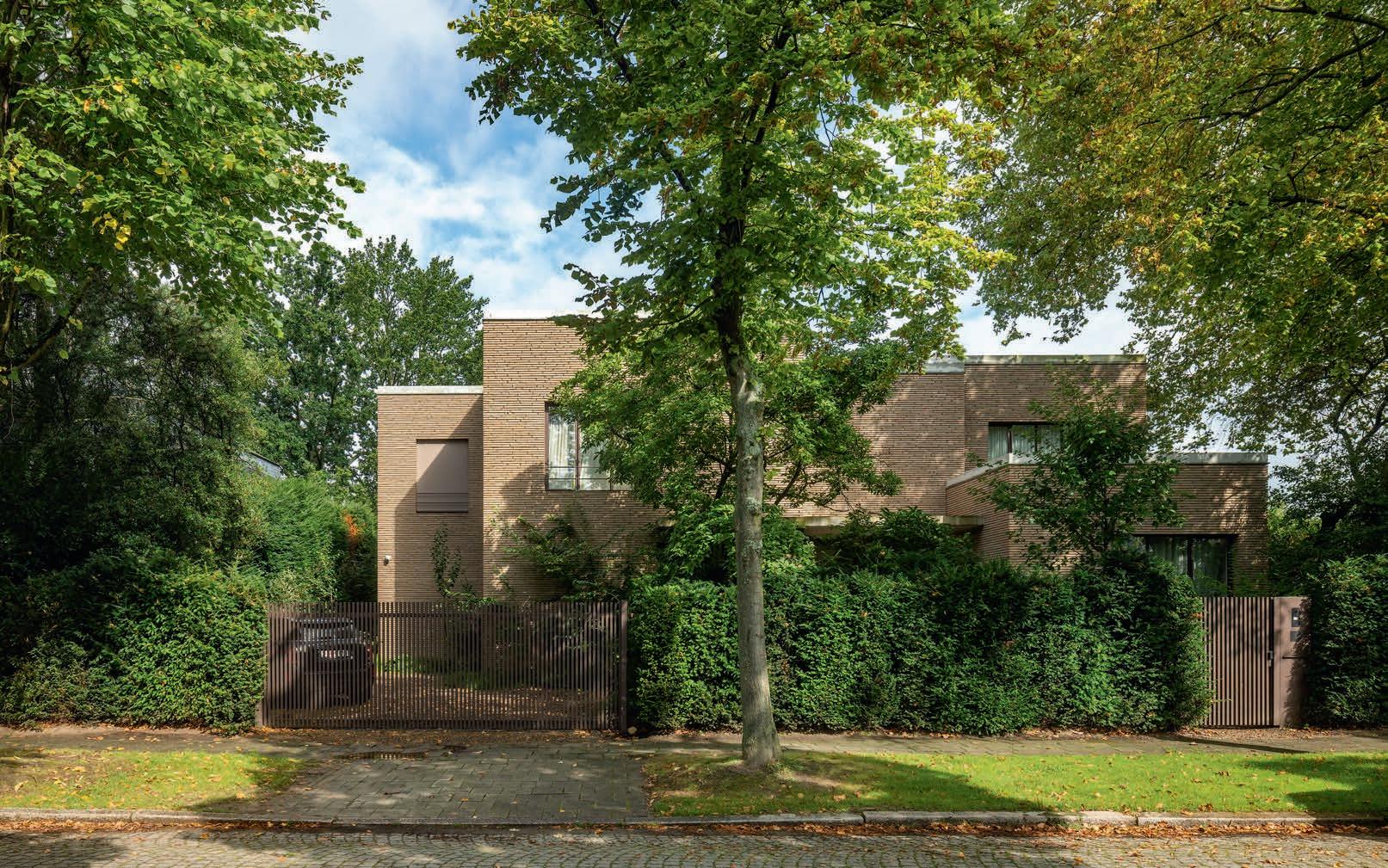 Moderne villaer fra mellemkrigstiden var bygherrens referencer, da Hans Verstuyft Architecten fik til opgave at tegne en ny villa i bydelen Wilrijk i udkanten af Antwerpen. Specifikt Mies van der Rohes villaer til Hermann Lange og Josef Esters i den tyske by Krefeld, som er karakteriseret ved horisontale bygningskroppe, sammenstillet af rektangulære volumener og med facader af mørke, røde mursten, samt kompletterende baldakiner. Endvidere Villa Kaplansky, det lokale forbillede i Antwerpen, tegnet af den polskfødte Nachman Kaplansky, hvis flydende, spatiøse interiører med utallige integrerede, ornamentale objekter sætter scenen for et kultiveret og eksklusivt moderne hjem. Kompositorisk har villaen i Wilrijk sit tydelige slægtskab med især Mies’ villaer, dog i form af en mere kompakt bygningskrop. Særligt den sydvendte facade mod gaden rejser sig, for til gengæld at trappe ned og lukke lys ind mod haven og det udendørs pool-område. Konceptuelt synes den arkitektoniske strategi at have været ét volumen til ét rum eller én funktion, hvilket har givet den samlede figur endnu flere forskydninger både i plan og snit. Én af hensigterne med dette greb har været at nedbryde skalaen på boligens omtrent 1000 kvadratmeter fordelt over og under jorden. Det må siges at være lykkedes.