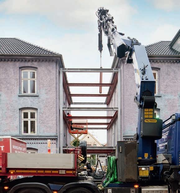 En stålrammekonstruktion lavet af genbrugsstål udgør den konstruktive kerne i tilbygningen. Foto: Morten