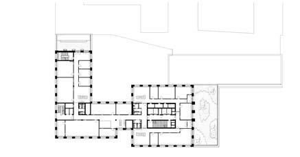 I stueetagen skaber arkader en gradvis overgang mellem ude og inde og giver plads til ophold.