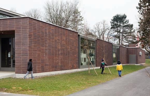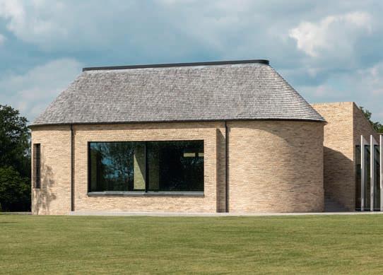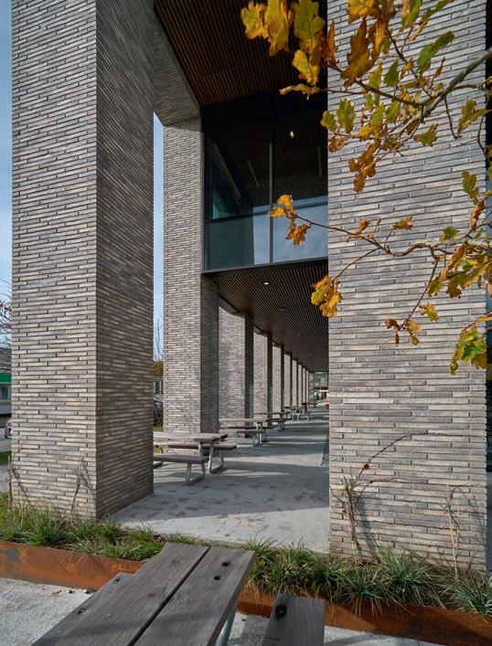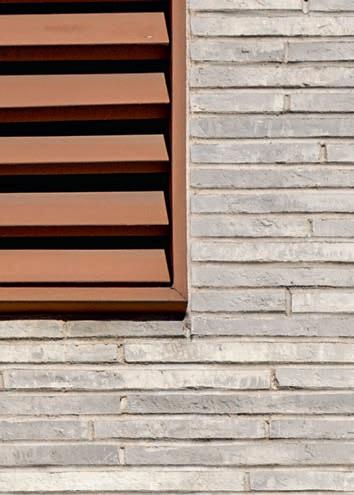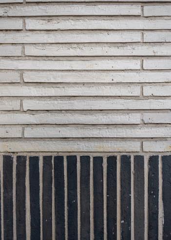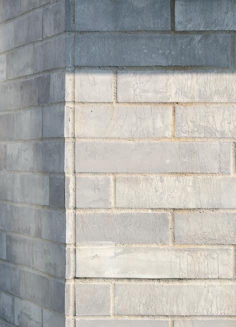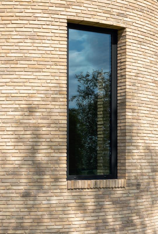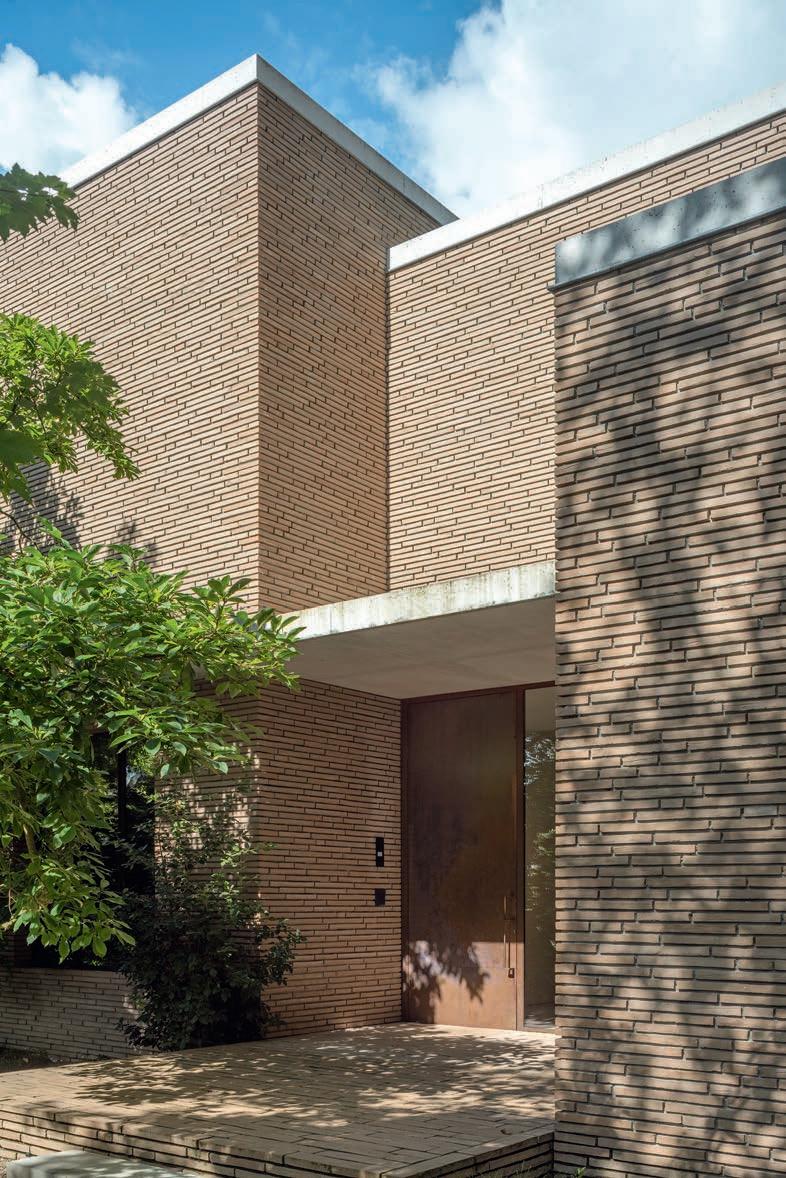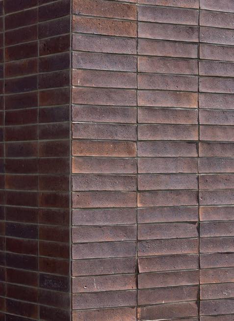 Arkitekterne har suppleret den klare, geometriske komposition med ujævne skifter, der fremhæver teglstenenes håndlavede karakter og rummer en dragende stoflighed,