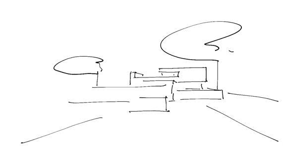 Set fra vejen er det ikke umiddelbart til at afgøre, hvilke flader der blot er havemure, og hvilke der er facader på den egentlige villa. Tilstedeværelsen af havemure både mod vej og mod have får villaen til i mindre grad at opleves som et hus placeret på en grund, men nærmere som et landskab af flader og volumener, hvor grund og hus flyder sammen og bliver til ét.