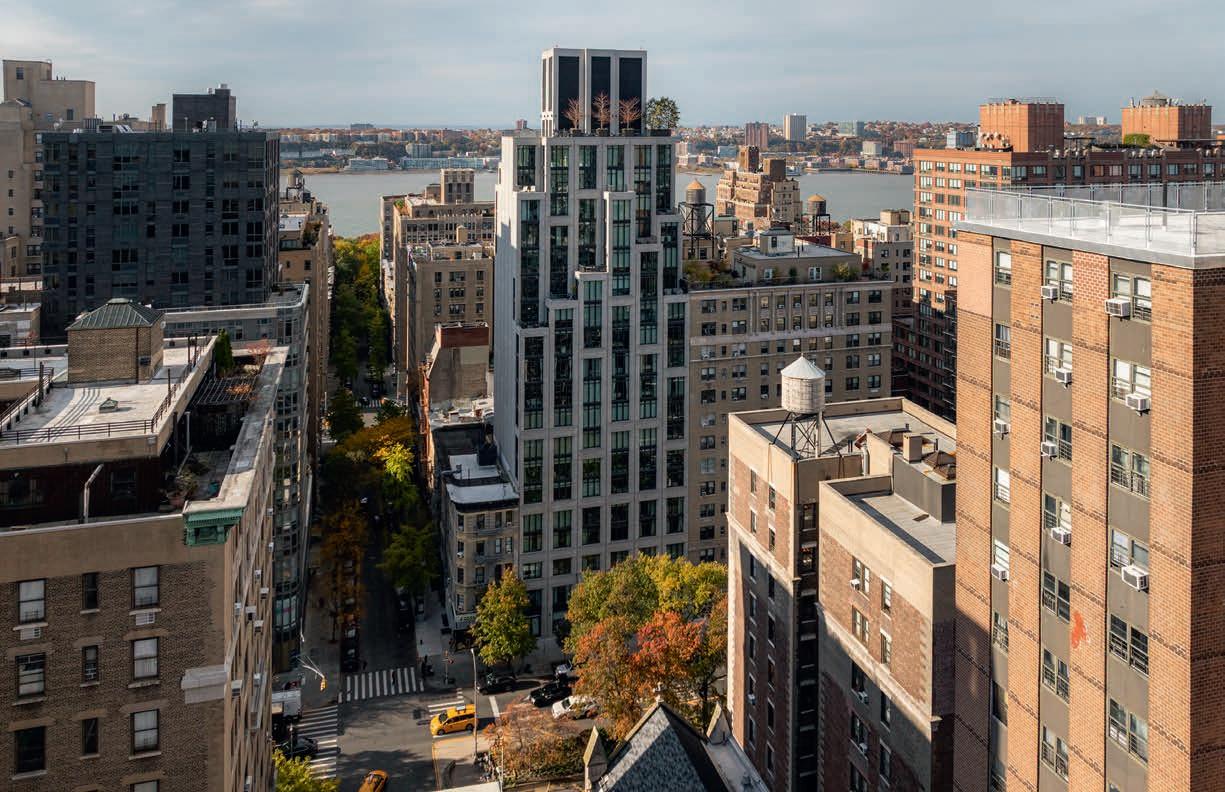 En 19-etagers beboelsesejendom tegnet af Office for Design and Architecture (ODA) på Manhattans Upper West Side udgør en stedsspecifik løsning på et universelt problem. En af udfordringerne ved at bygge med mursten i dag er et tab af karakter, der skyldes økonomiske hensyn og moderne byggemetoder. I dagens virkelighed er det vanskeligt at holde fast i murstenens egenskaber – oplevelsen af tyngde og den grundlæggende, menneskelige skala, potentialet for fantasifulde detaljer og det spil af flader og skygge, de kan give. Høje arbejdsomkostninger taler imod sindrige mønstre og detaljeringer, og bærende konstruktioner af stål og beton reducerer murværket til en tynd skal. Alt for ofte har denne beklædning samme flade udtryk som tapet og kunne lige så godt være fremstillet af et andet materiale.