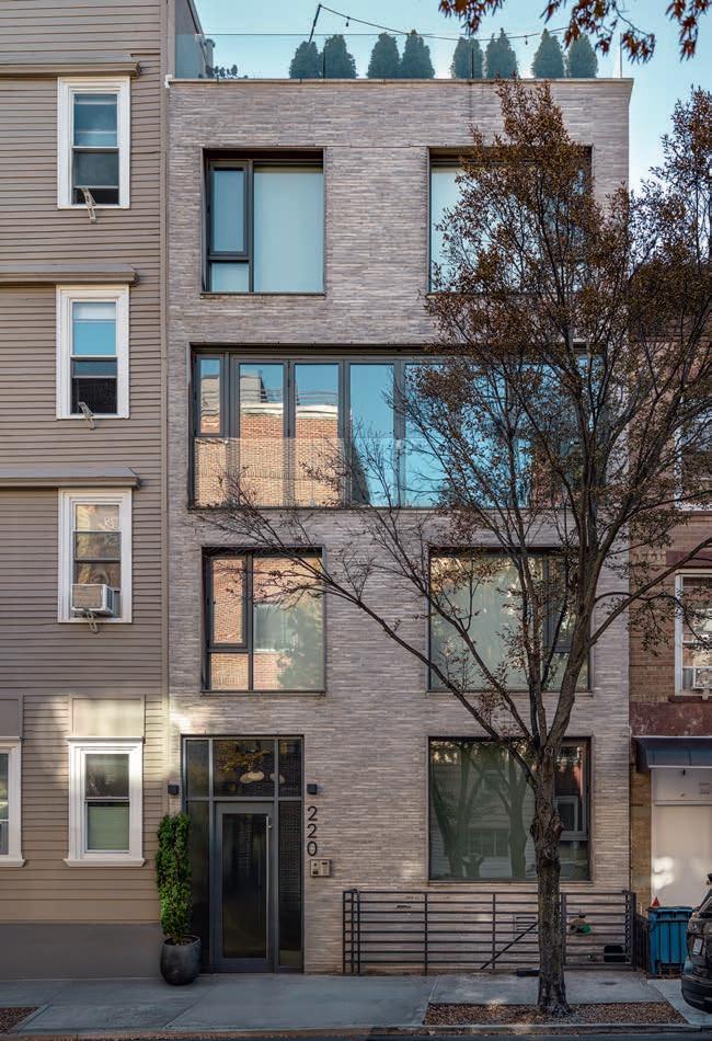 Med 220 North 6th Street har Woody Chen transformeret et treetagers enfamilieshus fra 1899 ved at tilføje en fjerdesal og en tilbagetrukket penthouselejlighed samt ved at skabe en ny facade med K91-sten. De to nederste etager rummer en lejlighed i to plan med store vinduer i værelserne og et mindre vindue i badeværelset, som er beliggende oven over hoveddøren, mens lejligheden på tredje sal har vinduer i hele etagens bredde, der lukker dagslys ind i opholdsstuen. Resultatet er en ejendom med tre lejligheder med samme storslåede skala og herskabelige karakter som de 1800-tals rækkehuse, man finder i mere etablerede dele af Brooklyn. Mens den modernistiske facadekomposition fremstår som et nyt indslag i områdets blanding af bygninger og facadematerialer, lader murværkets ru stoflighed og vilde forbandt bygningen falde ind i det sammensatte miljø.