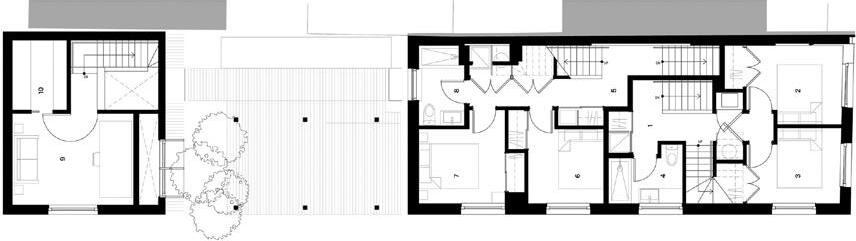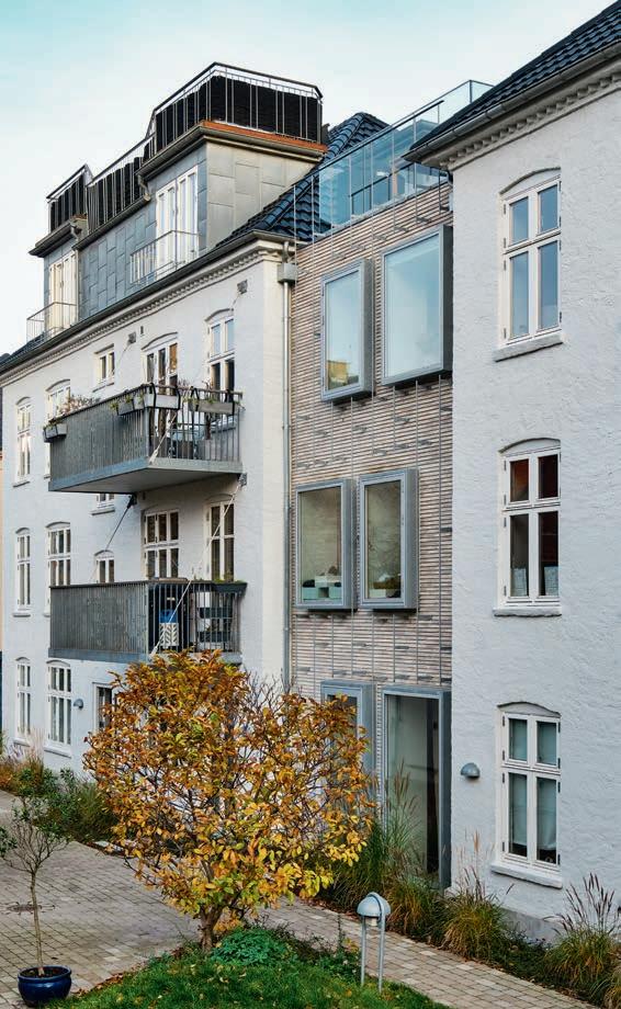 Seks lejligheder er udvidet med et ekstra rum, mens en syvende lejlighed har fået en tagterrasse på toppen af tilbygningen.