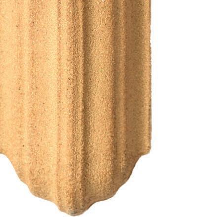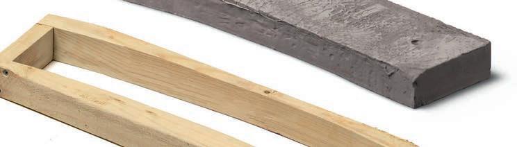 Petersen Tegl producerede i alt fem forskellige formsten i træforme for at håndtere husets mange hjørner og kanter. Den øverste sten er Kolumba i normalformat på 528 x 108 x 37 mm.