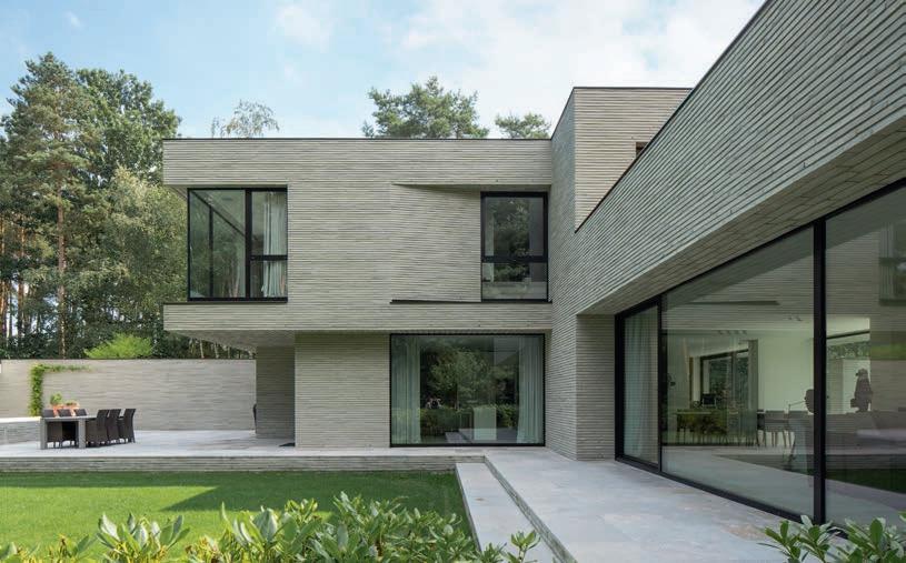 I EN VILLA I BELGISKE VOSSELAAR SKABER SAMMENSTILLINGEN AF HAVEMURE OG BYGNINGSKROPPE I LYSE KOLUMBA ET LANDSKABELIGT UDTRYK, HVOR GRUND OG HUS FLYDER SAMMEN OG BLIVER TIL ÉT.