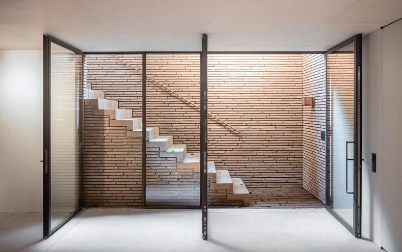 KOLUMBA UDFORMET I EN RÆKKE SPECIALFORMATER FOLDER SIG SMIDIGT OG PRÆCIST OMKRING VOLUMENER, ÅBNINGER, TRAPPER OG UDENDØRS AREALER I ET PRIVAT HJEM I WILRIJK.