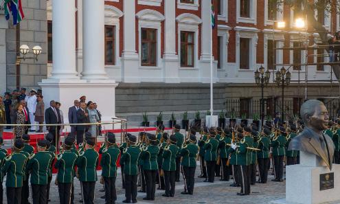 photo: GCIS President Jacob Zuma observes the twenty-one gun salute outside Parliament ahead of the State of the Nation Address in Cape Town.