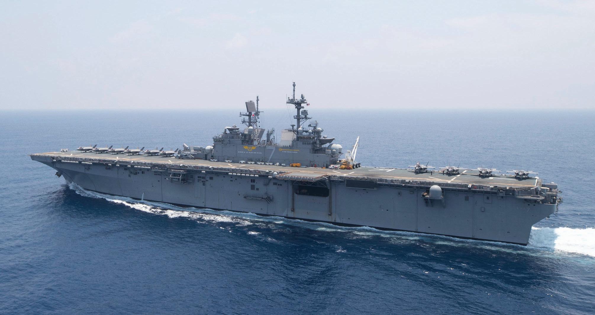 Amphibious assault carrier USS Tripoli (LHA 7) cruises through the Pacific Ocean. photo: Christopher Sypert