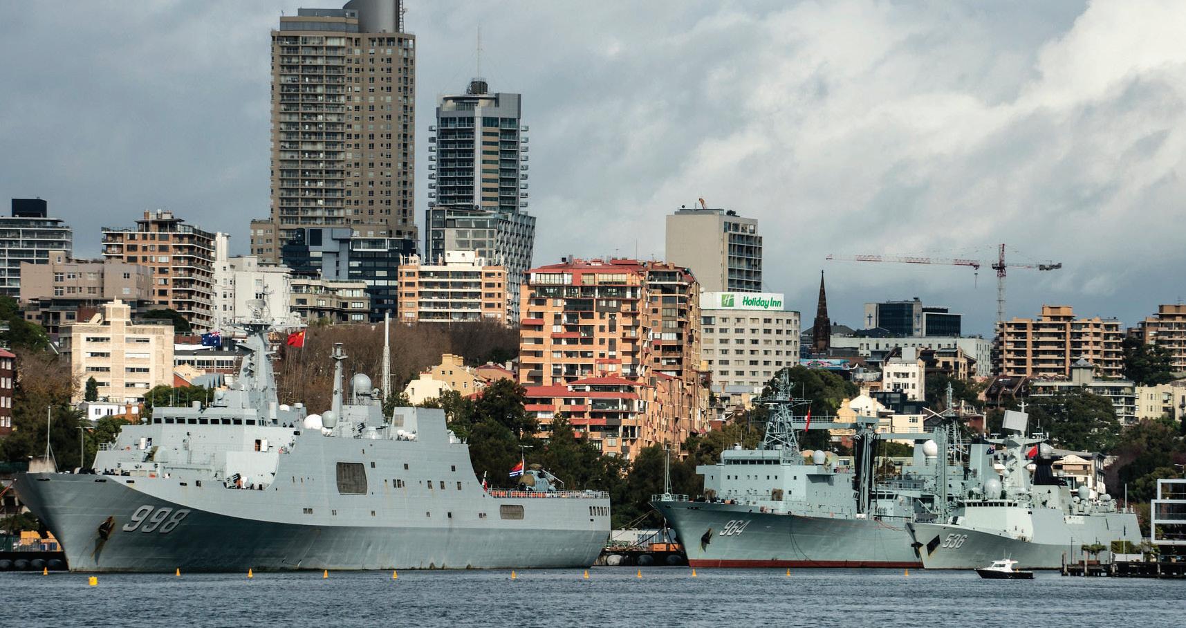 Three Chinese naval vessels at a port of call at Sydney Harbour, Australia. photo: John