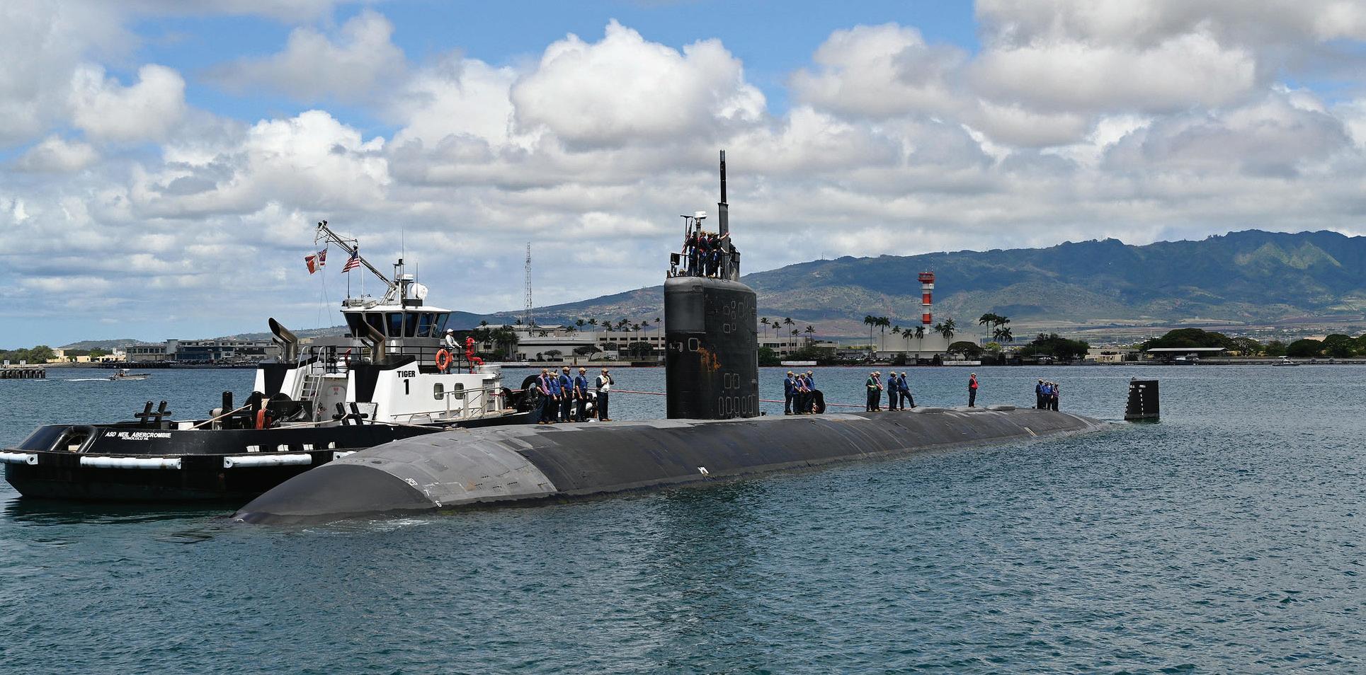 photo: Amy Biller The Los Angeles-class fast-attack submarine USS Charlotte (SSN 766) departs Joint Base Pearl Harbor-Hickam.