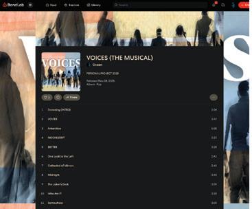 VOICES is a musical experience built from a compelling script accompanied by various songs ranging in emotion, style, and genre. Each song is written, composed, and produced to form a complete, cinematic story that metaphorically represents my personal growth. VOICES is a project of 11 songs, a 45 minute script, all born from inspiration, creativity, and the end goal of defining individual artistic intentions and capabilities through its exciting debut.