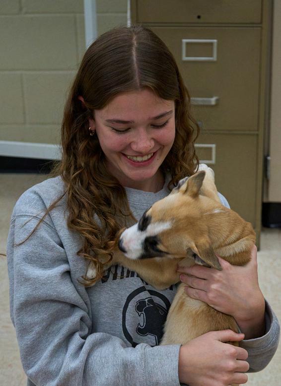 3: Ella Gwinn (9) smiles as a tiny visitor squirms in her arms. Counselor Ms. Jennifer Salvage organized for the puppies from To Love a Canine Rescue organization to visit on March 11 to boost Haven’s spirits after a long, cold, winter. PHOTO: KATHRYN BARRETT
