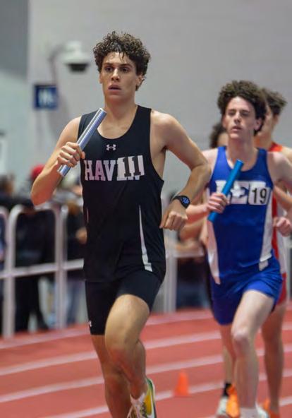 2: Luca Fantozzi (10) maintains pace while running the 4x800m on Jan. 16 at the University of Pennsylvania. “My favorite part of racing these track meets is just the vibe it gives you,” Fantozzi said. “You’re with so many people that are all trying to go towards the same goal and it just puts you in a really good mindset where you feel like you can do anything.” HENRY CHOI