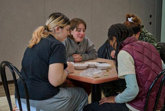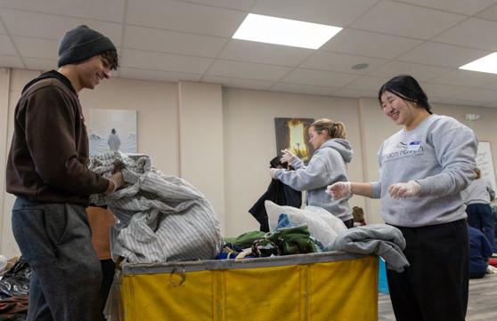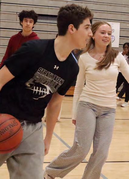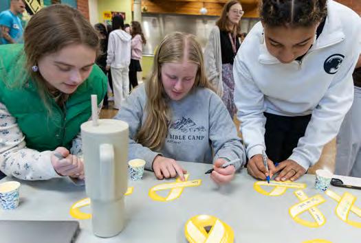 4: Savannah Neri (9), Zarah Bach (9), and Nadine Detsi (9) write positive messages on yellow ribbons for Wellness Wednesday on Feb. 18. Activities included a fitness test, smoothies, and a visit from St. Joseph’s Prevention Academy. ELIANA ROSEN