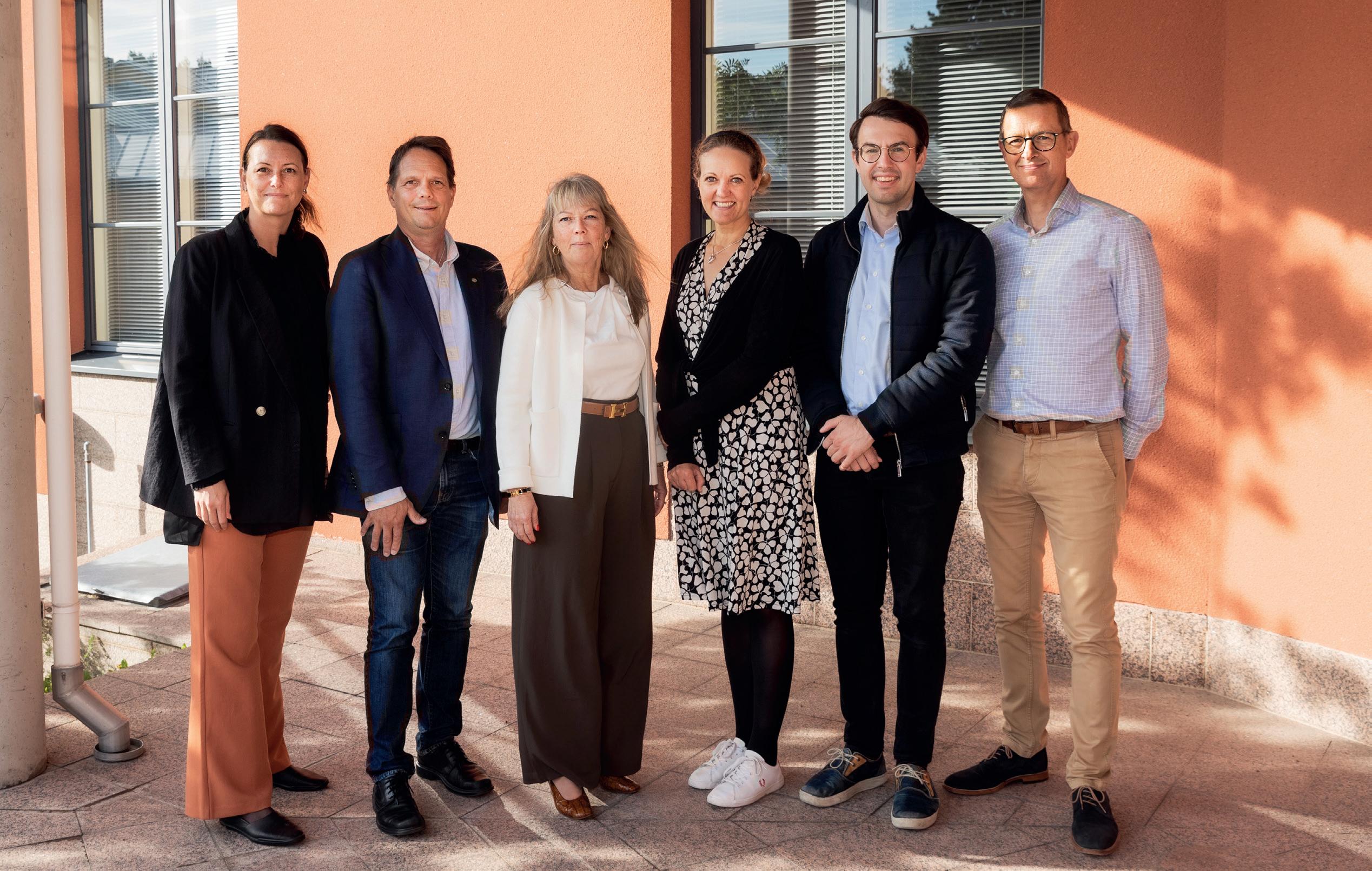 Nedan: Styrelsen från vänster är Julia Birney, ordförande Ian Bergström, Camilla Hägglund-Palmqvist, Erica Lindberg, Simon Holmström och vd Jan Blomqvist, saknas på bilden gör Victor Verboog.
