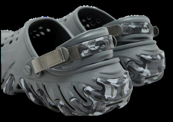A bold look from Crocs These men's Echo Clogs have a fully moulded Croslite upper Light and waterproof, they've got a padded heel strap to lock you in And a LightRide footbed for sinkin comfort Finished with a camo print