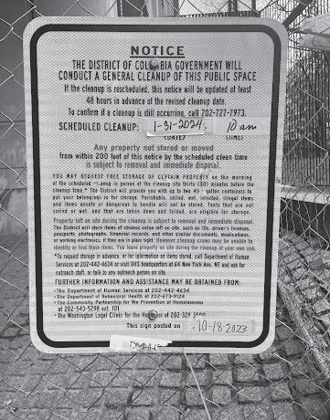 According to D.C.’s encampment protocol, D.C. must give encampment residents written notice of an encampment closure at least 14 days in advance, unless the closure is considered an “immediate disposition.” An immediate disposition allows the city to clear encampments with between 24 hours and six days notice.