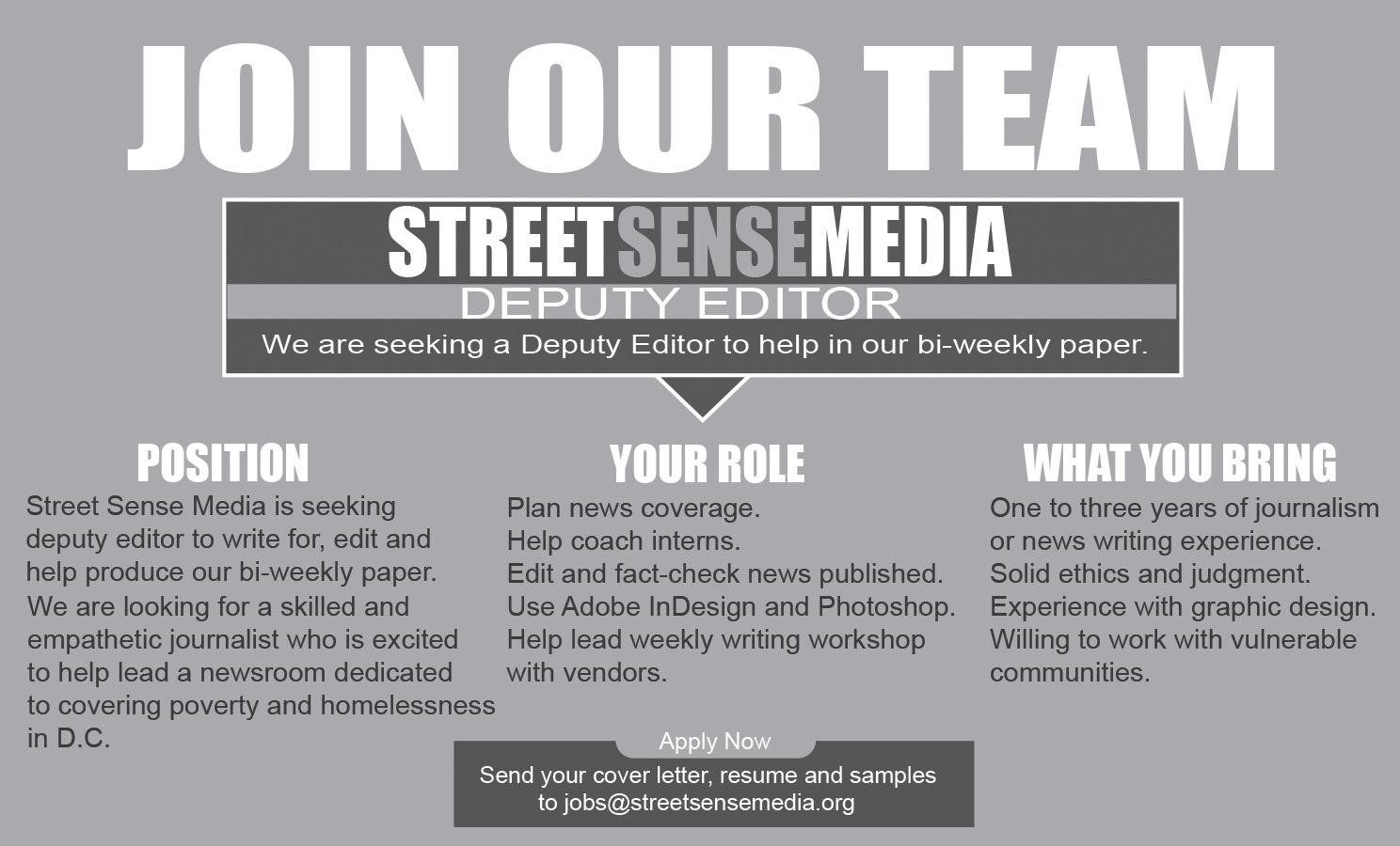 1. I will support Street Sense Media’s mission statement and in so doing will work to support the Street Sense Media community and uphold its values of honesty, respect, support, and opportunity.