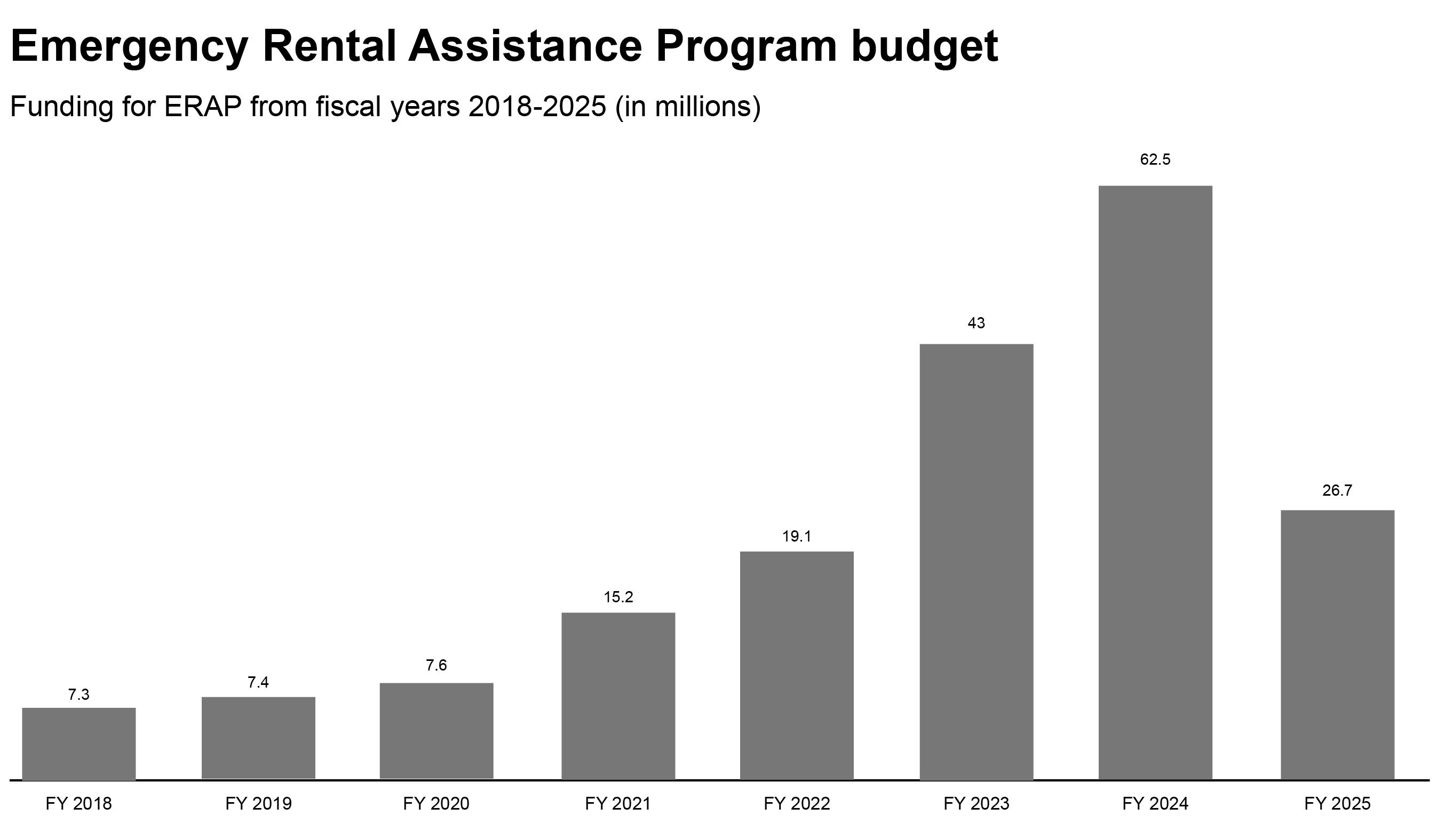In homelessness prevention, the Emergency Rental Assistance Program (ERAP), which supports District residents facing housing emergencies and evictions, will still see a dramatic reduction in funds compared to last fiscal year’s budget of $40 million in local funding, plus about $20 million in federal funding. This year’s cut is a little less than Mayor Muriel Bowser’s initial proposal, due to a one-time $6.7 million injection into the program, bringing the ERAP budget to around $26.7 million.