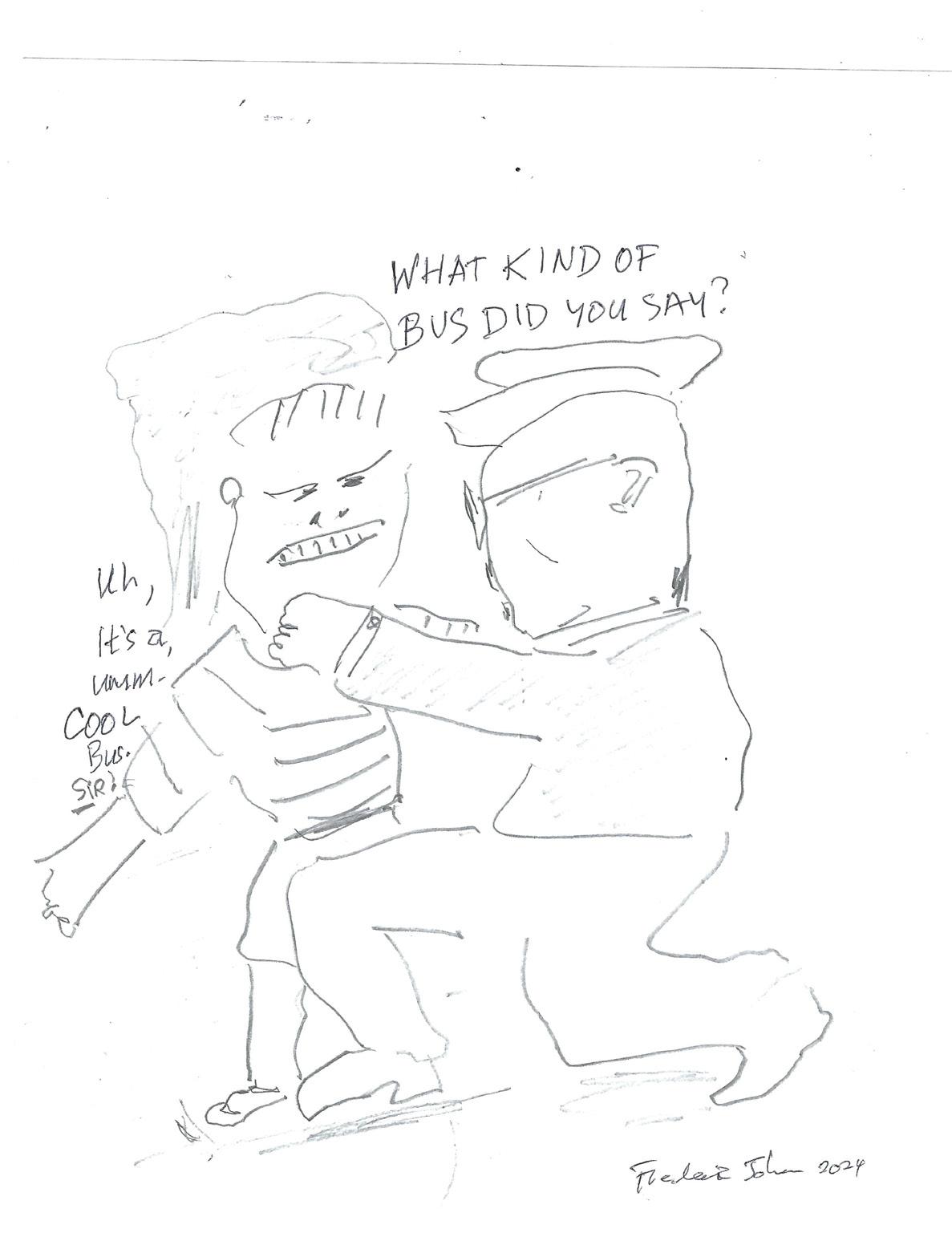 “I-it’s-uh-it’s-a-cool bus, s-sir,” Billy drooled.