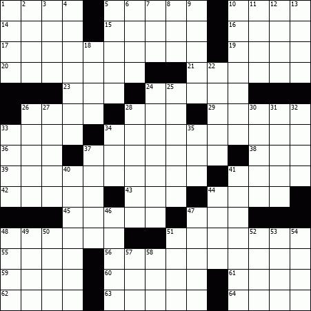 tying knots 26. “G’day, ___!” 28. Postgrad deg. 29. Indisposed 33. Garb 34. Top boss 36. Eden exile 37. Comparatively more comical 38. Tenth anniversary gift 39. Chief plotter 41. Court defense 42. Montreal’s railway 43. Trig. function 44. Roll call response 45. Rockies resort 47. Sword conqueror 48. Black Sea locale 51. Heart part 55. Paper starter 56. Oppressive boss 59. Church recess 60. Postal device 61. Put up on the wall 62. Pb 63. Little house on the prairie? 64. Hotel amenities