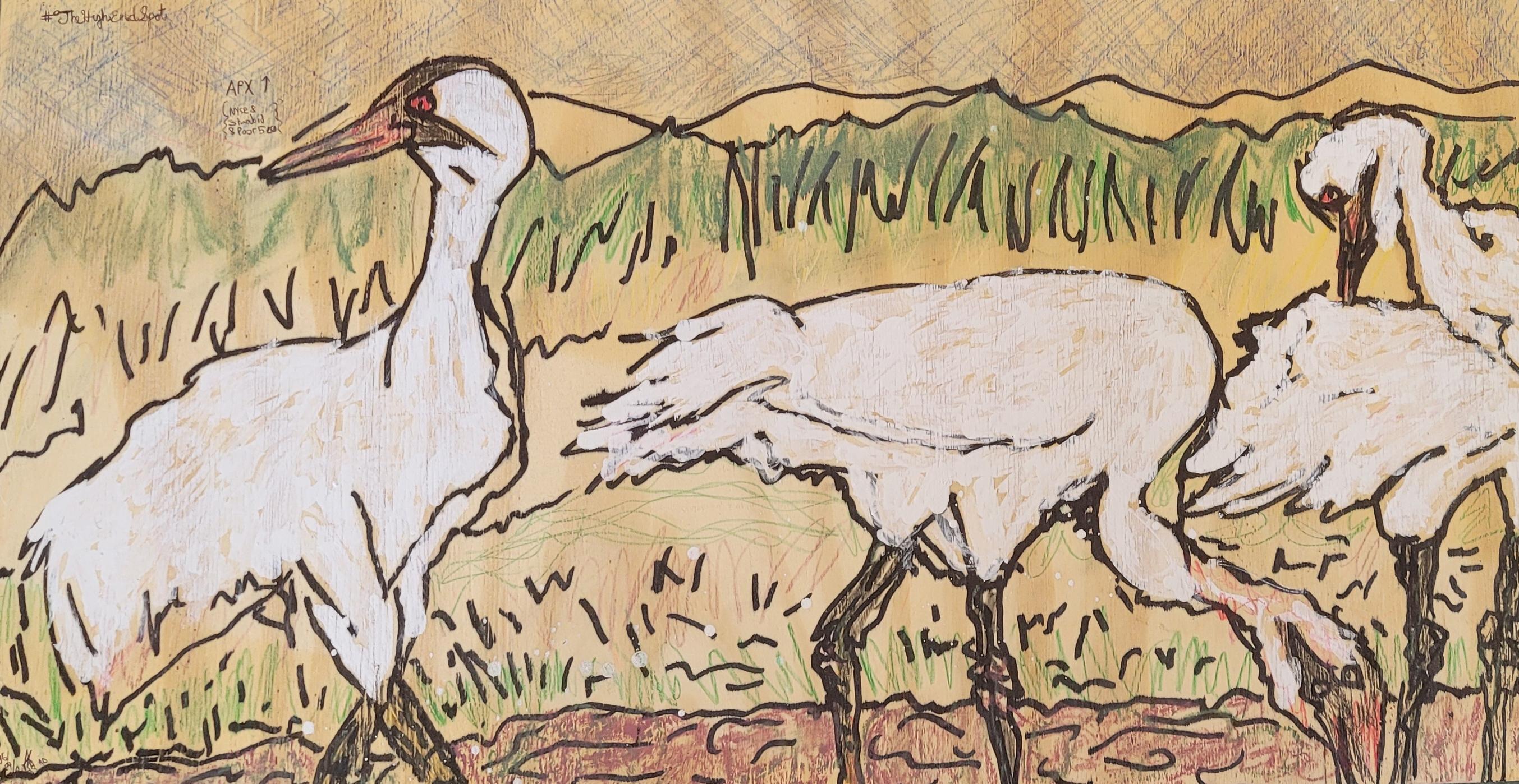 The Cover ILLUSTRATION OF WHOOPING CRANES BY AKINDELE AKEREJAH COVER DESIGN MADE IN CANVA BY ATHIYAH AZEEM