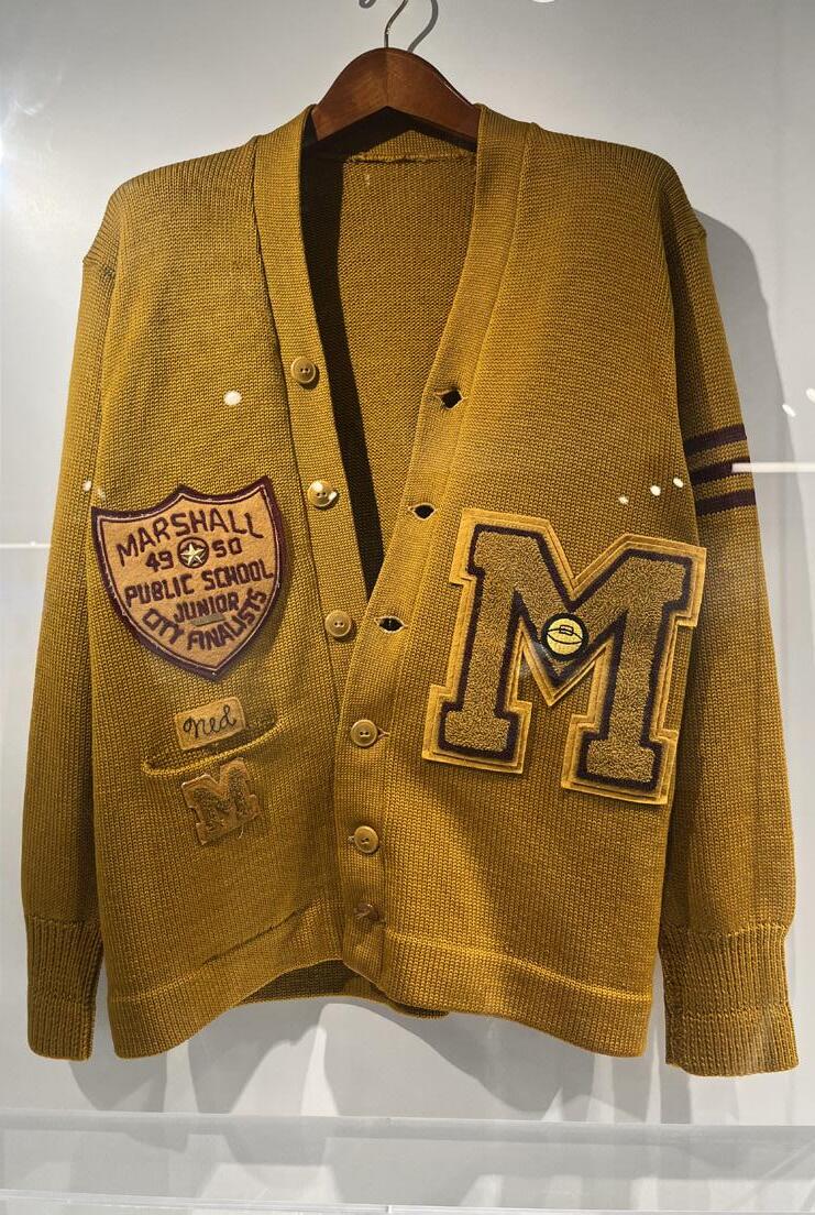 • The Marshall High School letter sweater of Ned Lufrano, who lived at the Jane Addams Homes from 1938 to 1952, between ages 6 and 20; and who mastered a one-handed jump shot that won him a spot on Marshall’s basketball team.