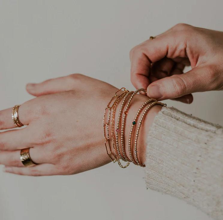 Kono & Co. started with modern friend ship bracelets inspired by the mom of owner Christina Chrom while she was pregnant, but it has evolved with a new inspiration by her side: Kono – her beautiful daughter. Being a mother totally has changed how she likes to wear jewelry. Today’s collection was created with three words in mind. Simple. Meaningful. Effortless. Kono & Co. utilizes all gold-filled components to ensure your piece will sustain your daily adventures. Cigar band rings, crystal birthstone bracelets, sparkle band rings and even birthstone anklets can be seen online at: www. konoandco.com and in person at The One-of-a-Kind Show December 5-8 at The Merchandise Mart, Chicago.