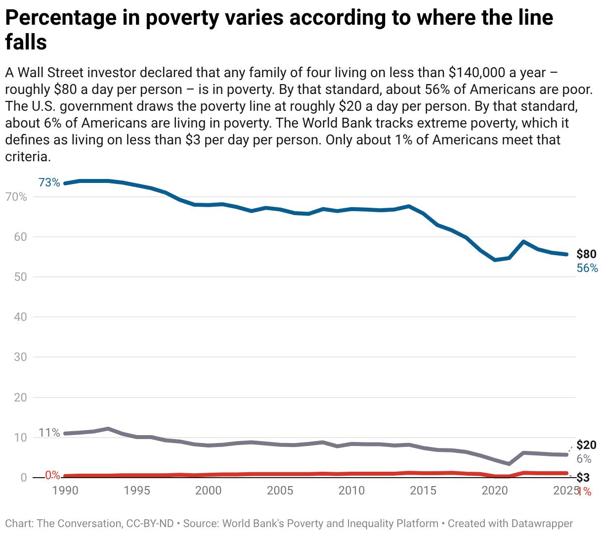 Michael W. Green, a Wall Street investor, created a buzz in late 2025 by arguing that the U.S. poverty line should be jacked up to US$140,000 for a family of four. Currently, a family of that size has to be eking by on $33,000 a year to qualify as poor in the federal government’s eyes.