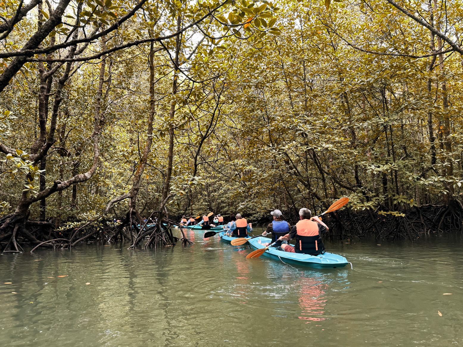 Paddle gently through calm mangrove channels, where the rhythm of the water and the surrounding forest create a peaceful, immersive encounter with nature.