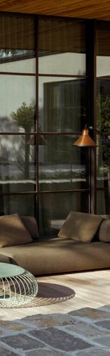 Auf dem Cover: Sofas, Chaiselongue und Couchtisch aus der Kollektion „Molo“ von Rodolfo Dordoni. Runder Tisch „Roll“ von Patricia Urquiola, Lampe „Half Dome” von Naoto Fukasawa, kleine Leuchte „Mia“ von Michel Charlot, Teppich „Geometrics“ von Doshi Levien. Erhältlich bei: www.kettal.com