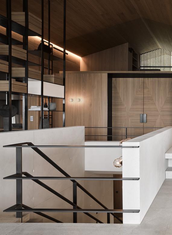 Das elegant Kühle des Sichtbetons und das definiert Klare von Metall tref fen im gesamten Haus auf das herzlich Warme des Holzes – ein roter Faden für das Interieur, dem sich das faszinierte Auge des Betrachters nur schwer entziehen kann. Bewusst auf die natürliche Unberührtheit zurück zugreifen und sie in eine Form zu bringen, die eine gestalterische Voll endung aus einem Guss zum Ausdruck bringt, war von Beginn an der Entwurfsansatz. „In unserem Design verfolgen wir das Ziel, diese Merk male herauszuarbeiten und dabei alle Materialien zu einer wohnlichen, reduzierten Einheit zu verbinden“, sagt Philipp Hoflehner über die Unter nehmensphilosophie. „Mit unserer Überzeugung, den Entwurf in all sei nen Details als ein großes Ganzes zu behandeln, haben wir einen Weg gefunden, mit kraftvollen Materialien ein Haus des Zusammenhalts und Wohlfühlens zu schaffen.“