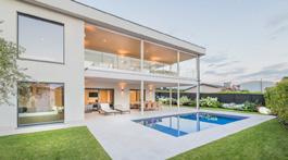 EDurch den großzügigen und eleganten Eingangs bereich gelangt man in den offenen Wohn- und Essbereich und in die mit hochwertigsten Geräten ausgestattete Küche. In der unteren Ebene wurden die Schlafräume – mit direktem Zugang zum Pool und Terrassenbereich – angelegt.